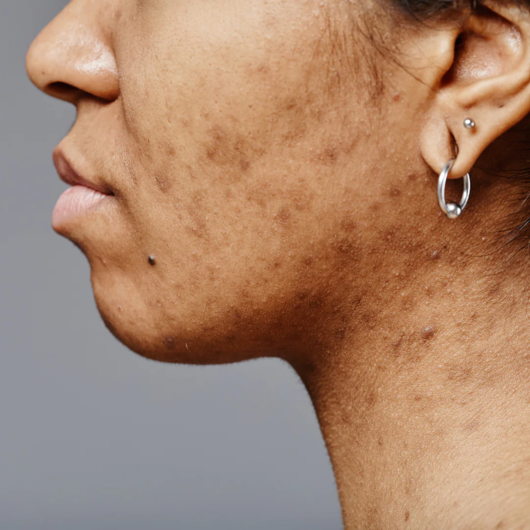 Any injury or inflammation, like acne or skin trauma, can result in darkened areas after healing.